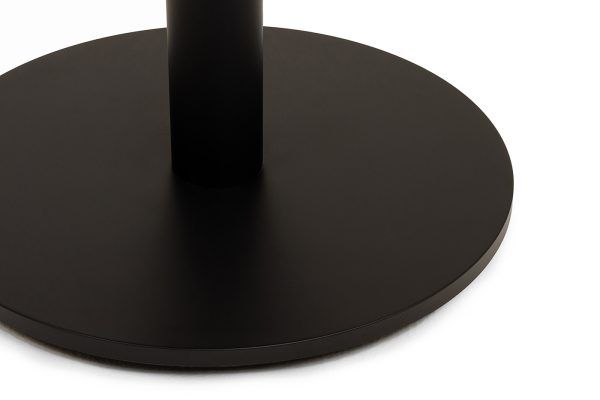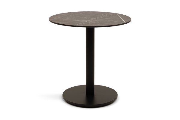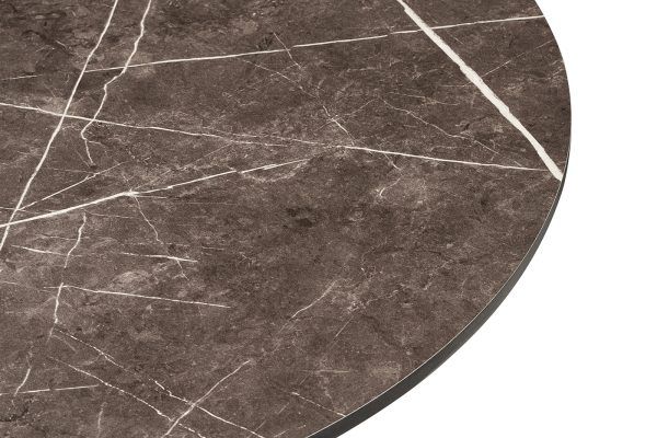 Стол 4SIS "Каффе" из HPL круглый - ОписаниеИнтерьерный круглый стол «Каффе» со столешницей из HPL в цвете «серый мрамор». Это высококачественный ударопрочный компакт-пластик, обладающий низкой пористостью, что предотвращает впитывание жидкостей, поэтому столы из HPL идеально подходит для обеденных зон. Толщина столешницы – 12 мм. Подстолье стальное черного цвета, с широким основанием, которое обеспечивает устойчивость конструкции.