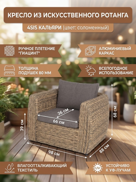 Кресло из искусственного ротанга (гиацинт) 4SIS «Кальяри» - ДоставкаДоставка по Санкт-Петербургу: бесплатно, 2-3 дня Доставка по России: стоимость уточняйте у оператора. Кресло из искусственного ротанга (гиацинт) 4SIS «Кальяри» - Отзывы0.0