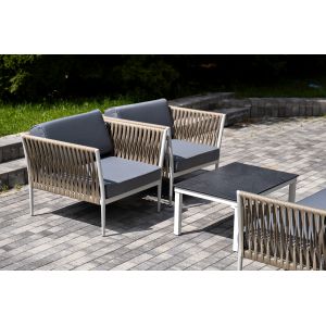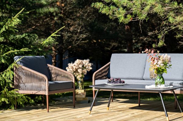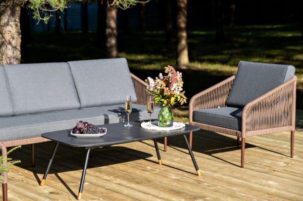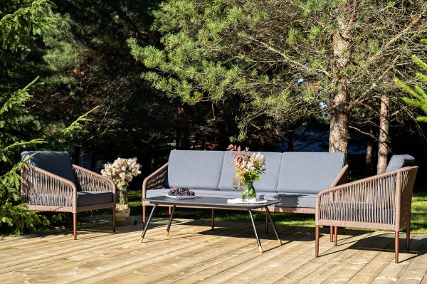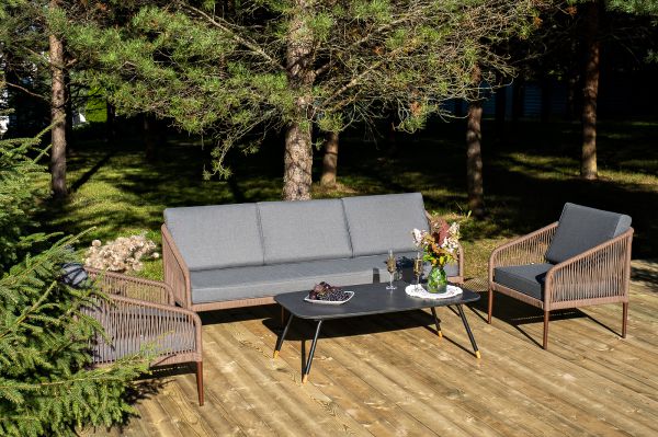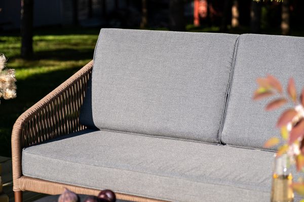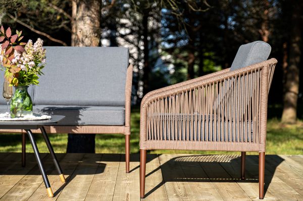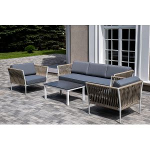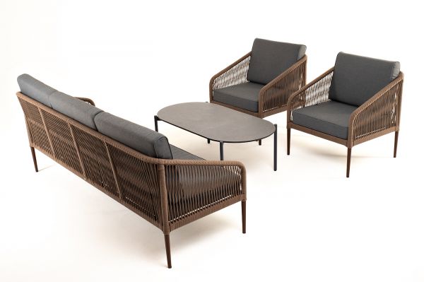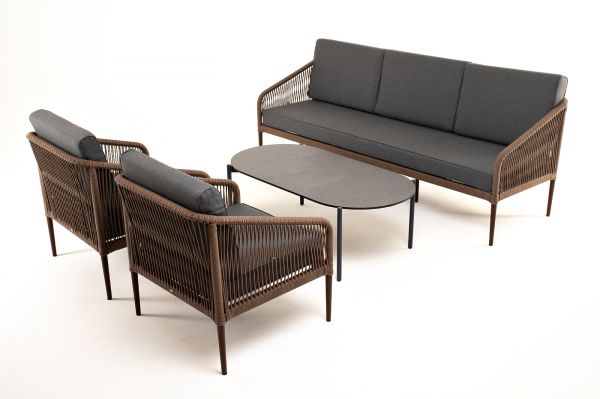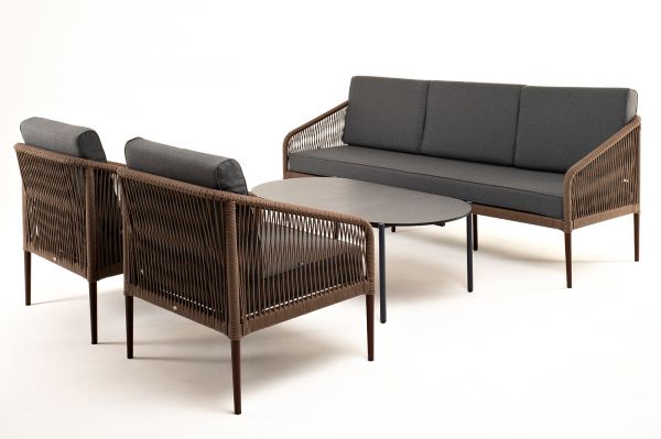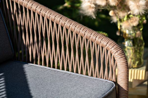 Лаунж-зона 4SIS Канны 5-местная плетеная, роуп коричневый - ОписаниеКаркас уличной мебели выполнен из износостойкого алюминия. Его дополняет коричневая ручная оплетка, изготовленная на основе эластичных синтетических лент из полиэфирных волокон высокой прочности.