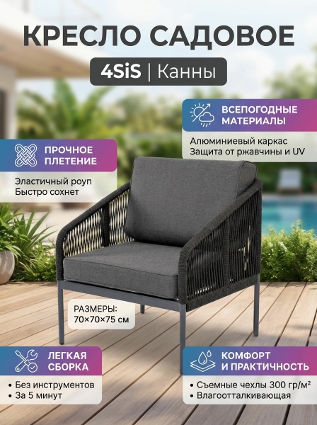 Кресло плетеное из роупа 4SIS «Канны» каркас алюминий темно-серый муар - Преимущества