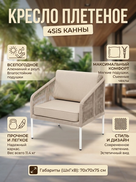 Кресло 4SIS "Канны" роуп бежевый круглый, ткань бежевая 052 - ДоставкаДоставка по Санкт-Петербургу: бесплатно, 2-3 дня Доставка по России: стоимость уточняйте у оператора. Кресло 4SIS "Канны" роуп бежевый круглый, ткань бежевая 052 - Отзывы0.0