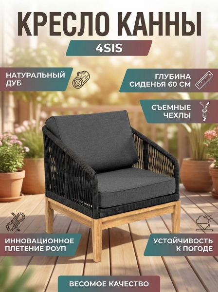 Кресло 4SIS "Канны", роуп темно-серый круглый, ткань темно-серая 027 - ДоставкаДоставка по Санкт-Петербургу: бесплатно, 2-3 дня Доставка по России: стоимость уточняйте у оператора. Кресло 4SIS "Канны", роуп темно-серый круглый, ткань темно-серая 027 - Отзывы0.0