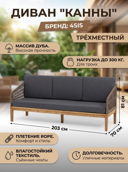 Диван 4SIS "Канны" трёхместный, роуп коричневый круглый, ткань темно-серая 027 - БрендСтрана бренда: Россия Премиальность бренда:Диван 4SIS "Канны" трёхместный, роуп коричневый круглый, ткань темно-серая 027 - Характеристики