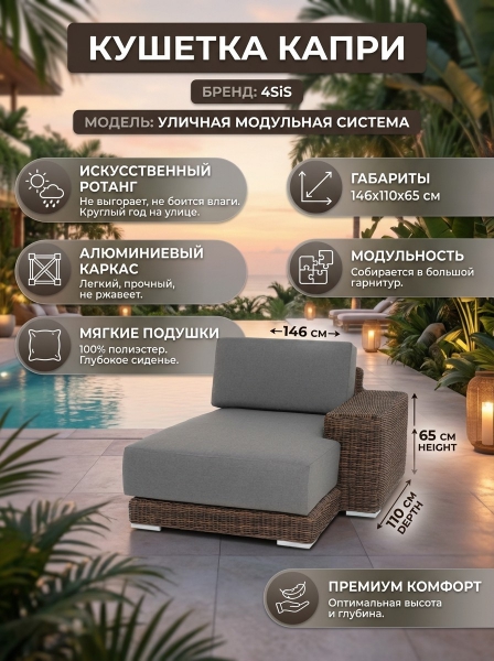 Кушетка 4SIS "Капри" ротанг коричневый - БрендСтрана бренда: Россия Премиальность бренда:Кушетка 4SIS "Капри" ротанг коричневый - Характеристики