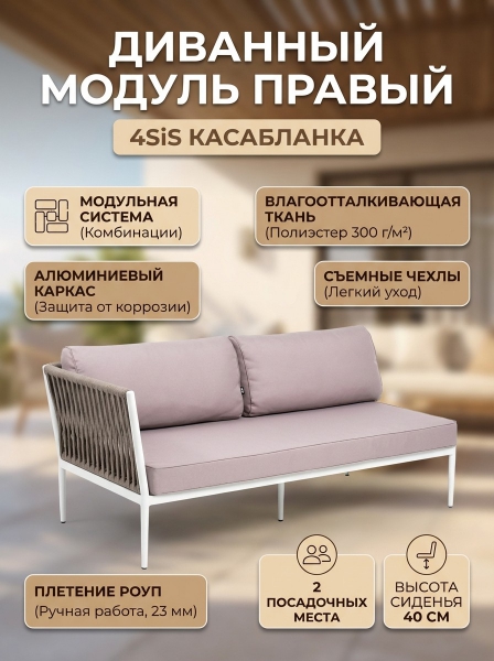 Диванный модуль 4SIS "Касабланка", правый, роуп серо-коричневый 23мм, ткань бежевая 15052 - ДоставкаДоставка по Санкт-Петербургу: бесплатно, 2-3 дня Доставка по России: стоимость уточняйте у оператора. Диванный модуль 4SIS "Касабланка", правый, роуп серо-коричневый 23мм, ткань бежевая 15052 - Отзывы0.0