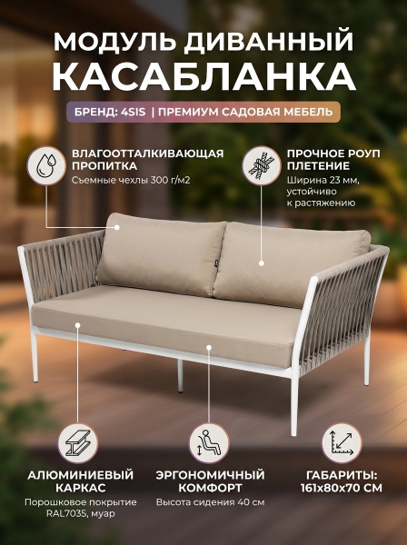 Модуль диванный 4SIS "Касабланка" левый, роуп серо-коричневый 23мм, ткань бежевая 15052 - БрендСтрана бренда: Россия Премиальность бренда:Модуль диванный 4SIS "Касабланка" левый, роуп серо-коричневый 23мм, ткань бежевая 15052 - Характеристики