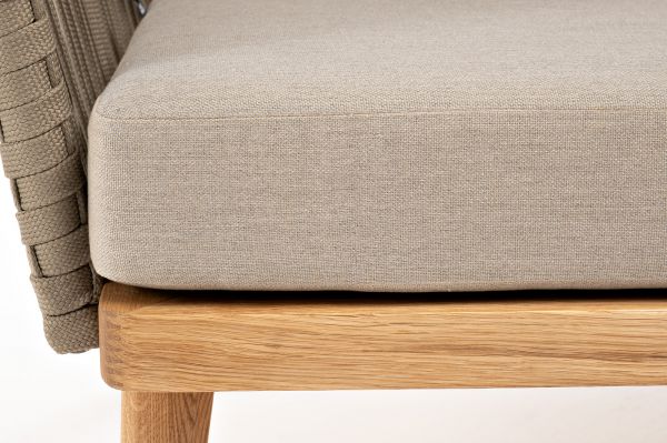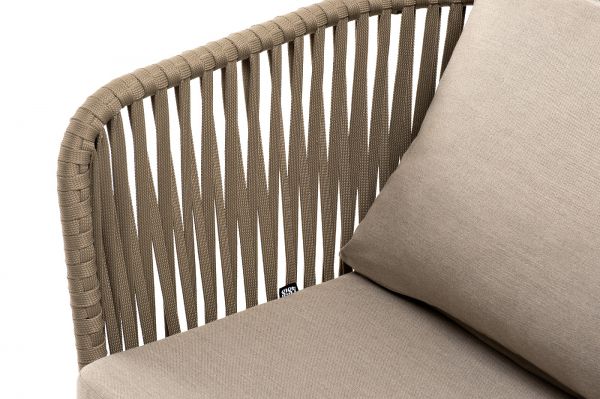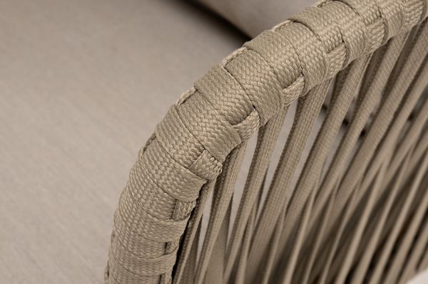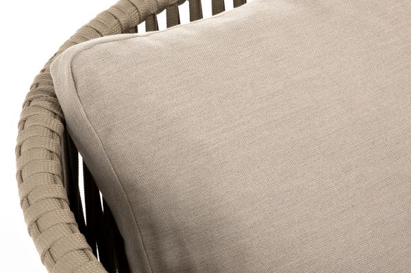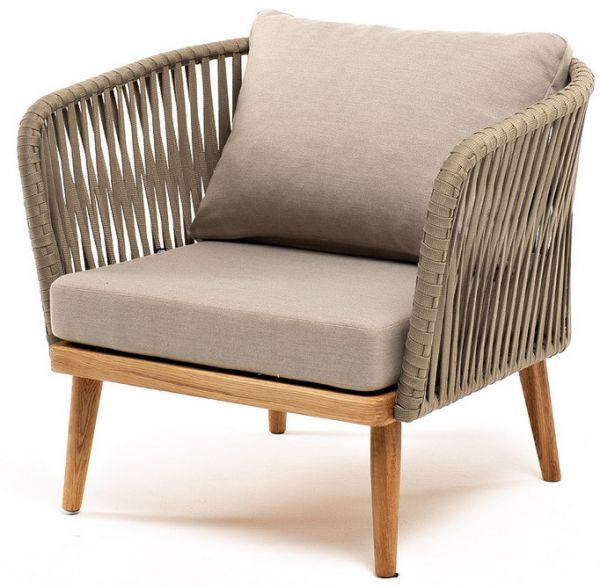 Кресло плетеное из роупа 4SIS Мальорка - ОписаниеПлетеное кресло «Мальорка» идеально подходит для комфортного отдыха в саду или на балконе. На боковинах - оплетка из синтетических лент, выполненных из полиэфирных волокон высокой прочности. Цвет плетения - серо-коричневый. Тип ткани - рогожка. Основание - дуб. Приятное дополнение − подушки со съёмными чехлами бежевого оттенка.