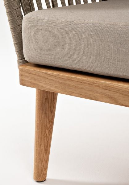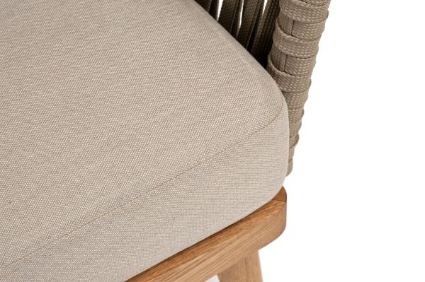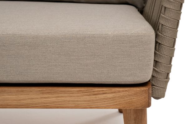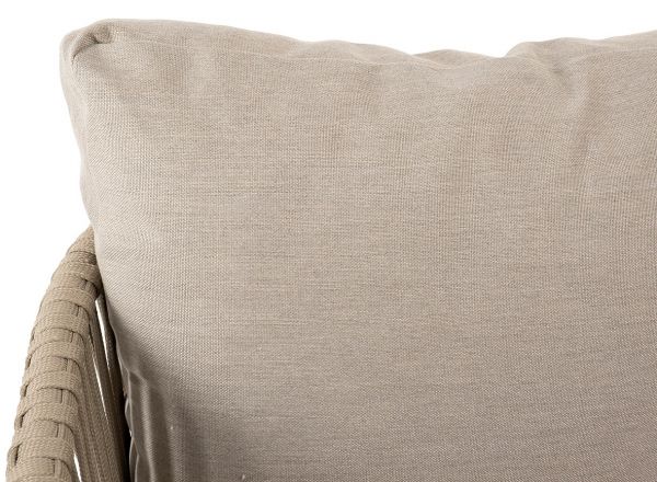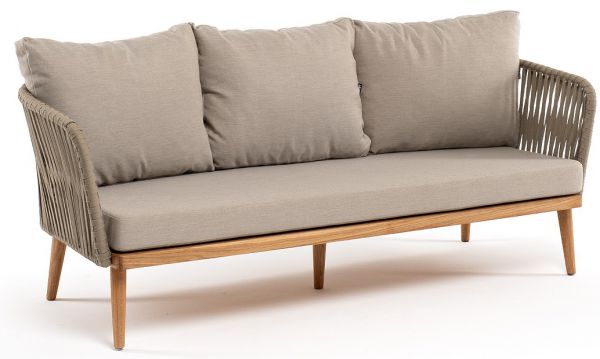 Диван 3-местный плетеный из роупа 4SIS Мальорка - ОписаниеТрехместный диван «Мальорка» с подушками в комплекте. Боковины каркаса и спинка вручную оплетены роупом - эластичными синтетическими лентами, изготовленными из высокопрочных полиэфирных волокон. Цвет оплетки - серо-коричневый. Основание - дуб. Подушки состоят из наполнителя и съёмных чехлов, которые обработаны влагоотталкивающей пропиткой. Материал - 100% полиэстер, плотностью 300 гр/м2. Тип ткани - рогожка.