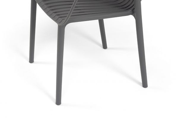 Стулья изготовлены из полипропилена, прочного и стойкого пластика, устойчивого к УФ-излучению, благодаря этому стул сохраняет свой первоначальный вид и не выцветает на солнце даже несмотря на активную эксплуатацию.