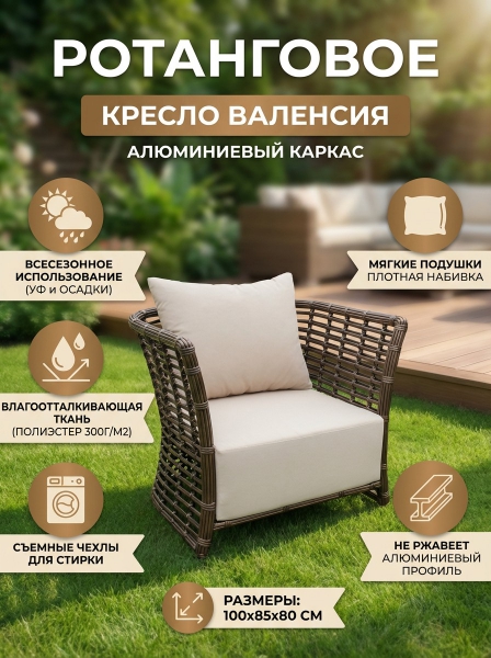 Кресло из искусственного ротанга 4SIS «Валенсия» - ОписаниеКресло из искусственного ротанга "Валенсия" станет прекрасным дополнением к месту отдыха.