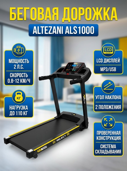 Электрическая беговая дорожка домашняя Altezani ALS 1000 - ДоставкаДоставка по Санкт-Петербургу: бесплатно, 2-3 дня Доставка по России: стоимость уточняйте у оператора. Электрическая беговая дорожка домашняя Altezani ALS 1000 - Отзывы0.0