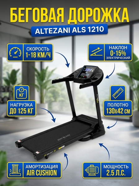Беговая дорожка Altezani ALS 1210 - ДоставкаДоставка по Санкт-Петербургу: бесплатно, 2-3 дня Доставка по России: стоимость уточняйте у оператора. Беговая дорожка Altezani ALS 1210 - Отзывы0.0
