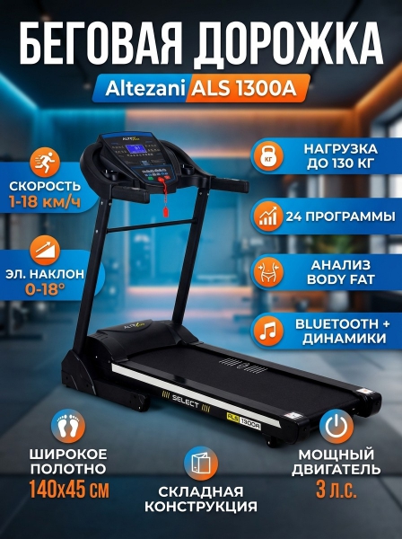 Беговая дорожка для дома Altezani ALS 1300A - ДоставкаДоставка по Санкт-Петербургу: бесплатно, 2-3 дня Доставка по России: стоимость уточняйте у оператора. Беговая дорожка для дома Altezani ALS 1300A - Отзывы0.0
