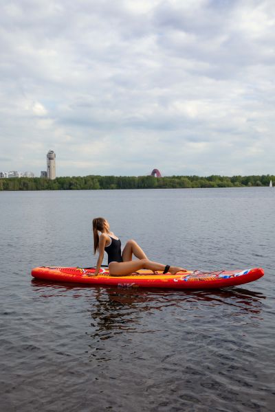 Комплект включает в себя: - весло из прочного пластика, разборное и не тонущие; - сумку для хранения и транспортировки доски; - страховочный ремень; - плавник для лучшего управления доской; - дорожный ремонтный набор; - непромокаемый чехол для телефона