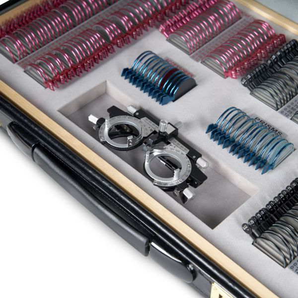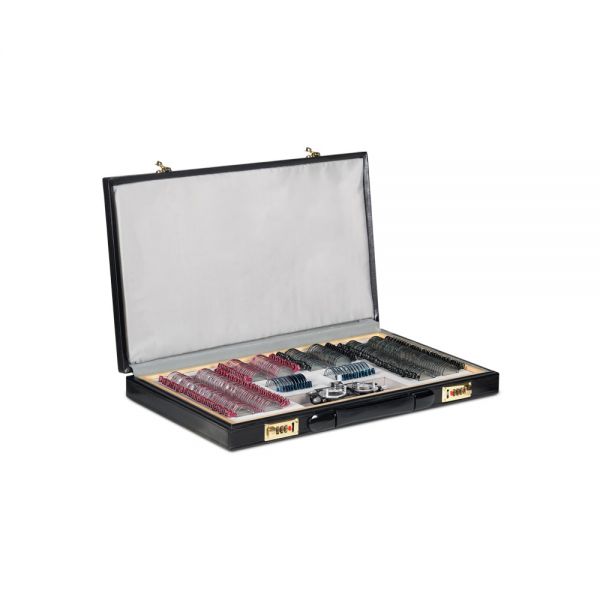 Полный набор пробных линз, позволяющий провести углублённую диагностику зрения благодаря широкому диапазону диоптрий и большому выбору вспомогательных линз. Все линзы изготовлены из оптического стекла в прочной металлической обойме с обозначением характеристик на рукоятке и вставляются в универсальную пробную оправу, которая используется для обследования зрения.