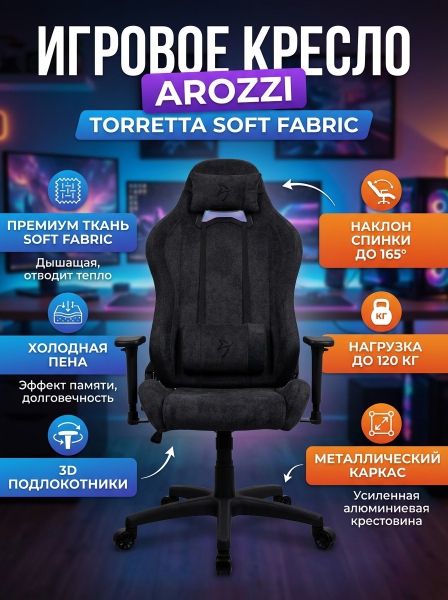 Компьютерное кресло Arozzi Torretta Soft Fabric - Pure Black - ДоставкаДоставка по Санкт-Петербургу: бесплатно, 2-3 дня Доставка по России: стоимость уточняйте у оператора. Компьютерное кресло Arozzi Torretta Soft Fabric - Pure Black - Отзывы0.0