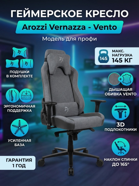 Геймерское кресло Arozzi Vernazza - Vento™ - ДоставкаДоставка по Санкт-Петербургу: бесплатно, 2-3 дня Доставка по России: стоимость уточняйте у оператора. Геймерское кресло Arozzi Vernazza - Vento™ - Отзывы0.0