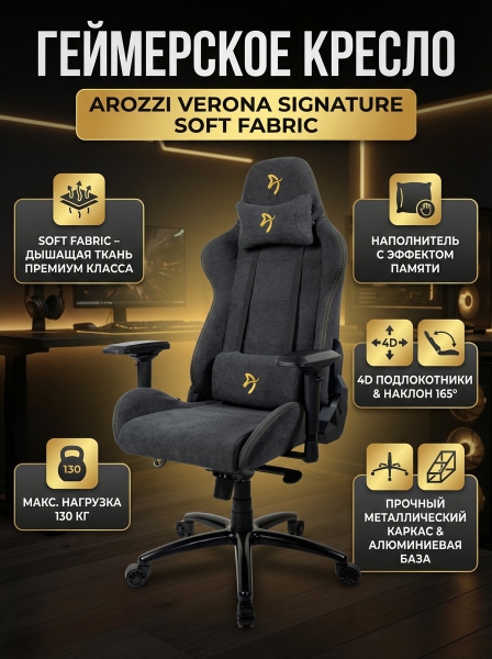 Геймерское кресло Arozzi Verona Signature Soft Fabric - ДоставкаДоставка по Санкт-Петербургу: бесплатно, 2-3 дня Доставка по России: стоимость уточняйте у оператора. Геймерское кресло Arozzi Verona Signature Soft Fabric - Отзывы0.0