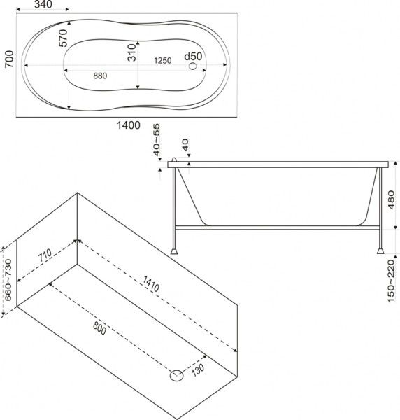 Ванна BAS Тесса 140х70 с гидромассажем - Описание