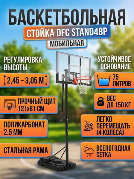 Мобильная баскетбольная стойка DFC STAND48P - ДоставкаДоставка по Санкт-Петербургу: бесплатно, 2-3 дня Доставка по России: стоимость уточняйте у оператора. Мобильная баскетбольная стойка DFC STAND48P - Отзывы4.7