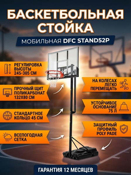 Мобильная стойка для баскетбола DFC STAND52P - ДоставкаДоставка по Санкт-Петербургу: бесплатно, 2-3 дня Доставка по России: стоимость уточняйте у оператора. Мобильная стойка для баскетбола DFC STAND52P - Отзывы5.0