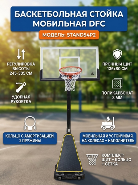Мобильная баскетбольная стойка DFC STAND54P2 - ДоставкаДоставка по Санкт-Петербургу: бесплатно, 2-3 дня Доставка по России: стоимость уточняйте у оператора. Мобильная баскетбольная стойка DFC STAND54P2 - Отзывы5.0