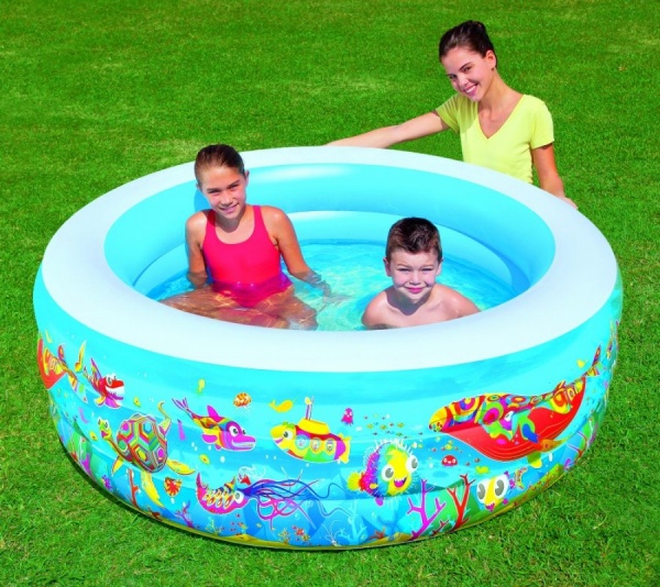 Детский круглый бассейн Bestway "Подводный мир", 196х53 см, 700 л - ОписаниеЭта модель отлично подходит даже для небольших дач или загородных участков, так как она компактная и не требует специального ухода. Бассейн выполнен из прочного трехслойного ПВХ. В комплект входит удобный ремнабор.