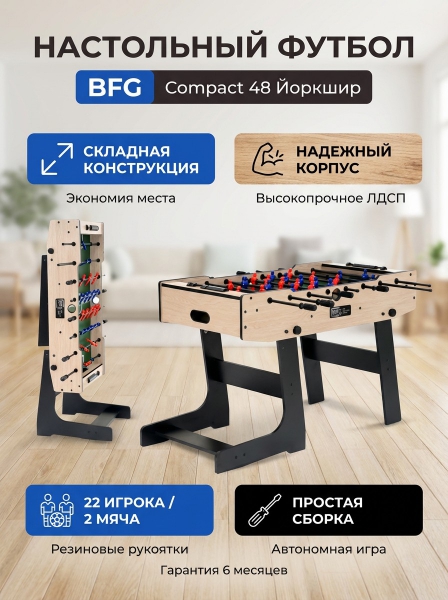 Настольный футбол/Кикер BFG Compact 48 (Йоркшир) - ДоставкаДоставка по Санкт-Петербургу: бесплатно, 2-3 дня Доставка по России: стоимость уточняйте у оператора. Настольный футбол/Кикер BFG Compact 48 (Йоркшир) - Отзывы0.0