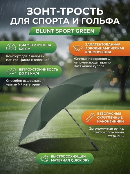 Зонт трость BLUNT Sport Green зеленый - Преимущества