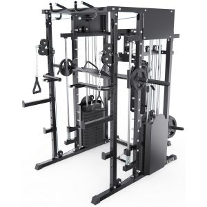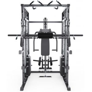 В конструкции установлен один весовой стек, его масса составляет 73 килограмма. Производитель использовал качественные стальные тросы, они способны выдержать нагрузку в 1 тонну. Наборные грузы позволяют проводить тонкую регулировку. В основе конструкции лежат прочные стальные профили, их размер составляет 2*3 дюйма.