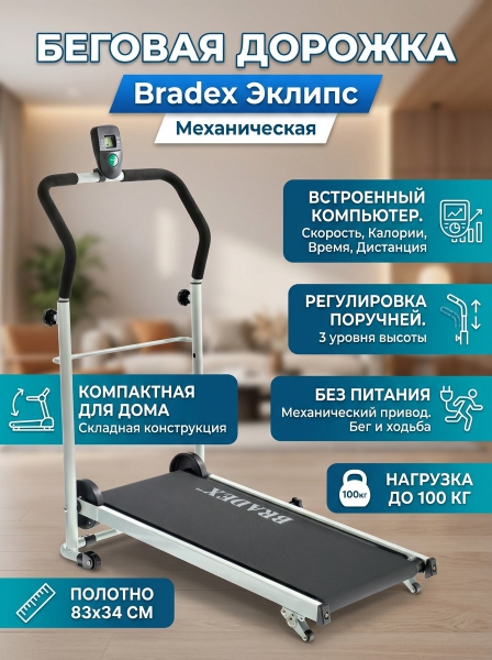 Механическая беговая дорожка Bradex «Эклипс» - ДоставкаДоставка по Санкт-Петербургу: бесплатно, 2-3 дня Доставка по России: стоимость уточняйте у оператора. Механическая беговая дорожка Bradex «Эклипс» - Отзывы0.0