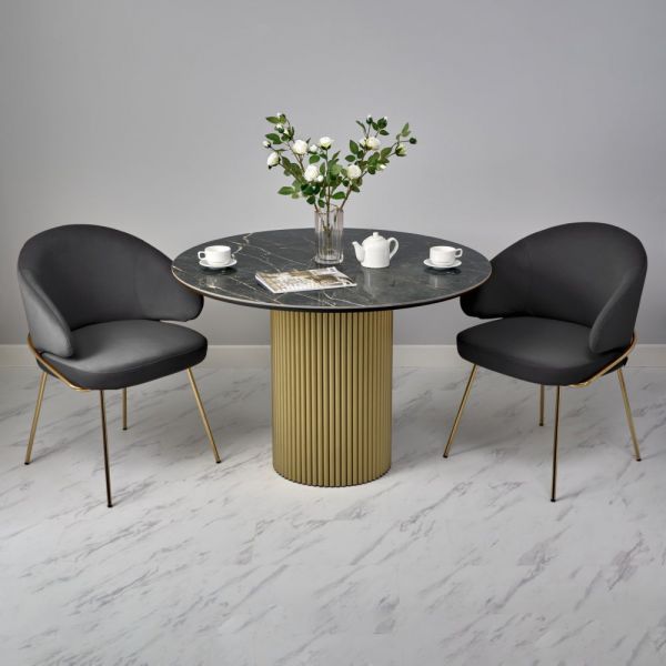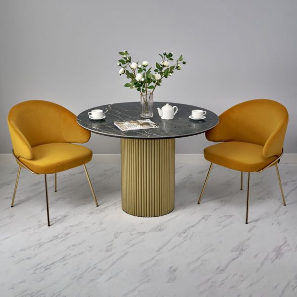 Стол BRADEX HOME Aura 110 см, керамогранит Wacom глянец, золото - ОписаниеСтильный нераздвижной стол Aura – идеальное сочетание элегантности и функциональности. Стол Aura обладает глянцевой премиальной круглой столешницей из керамики, имитирующей чнрный мрамор, диаметром 110 см.