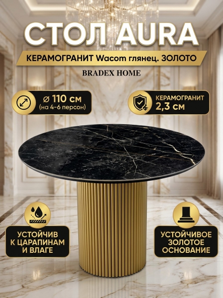 Стол BRADEX HOME Aura 110 см, керамогранит Wacom глянец, золото - БрендСтрана бренда: Россия Премиальность бренда:Стол BRADEX HOME Aura 110 см, керамогранит Wacom глянец, золото - Характеристики