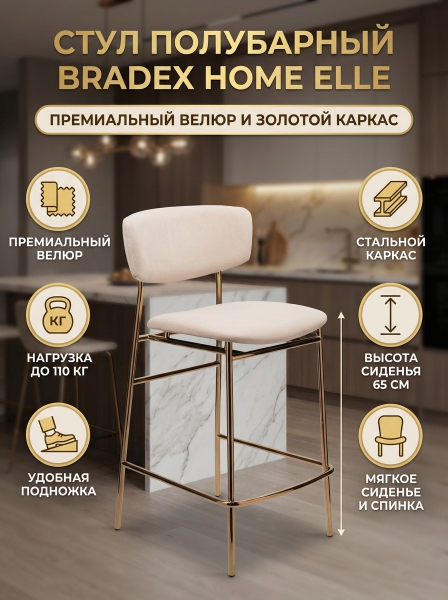 Стул полубарный BRADEX HOME Elle кремовый с золотыми ножками - ДоставкаДоставка по Санкт-Петербургу: бесплатно, 2-3 дня Доставка по России: стоимость уточняйте у оператора. Стул полубарный BRADEX HOME Elle кремовый с золотыми ножками - Отзывы0.0