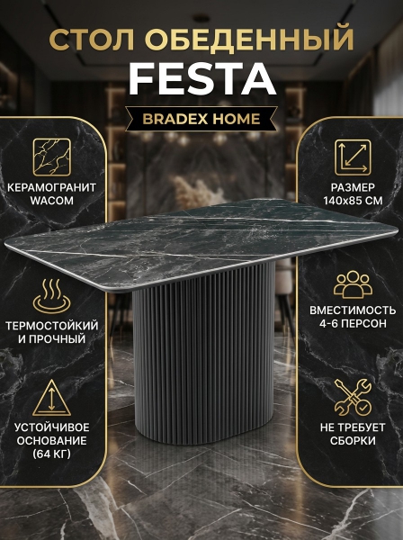 Стол BRADEX HOME Festa, керамогранит Wacom (глянец), черный