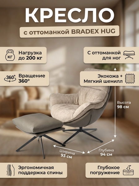 Кресло BRADEX HOME HUG латте, экокожа, шенилл с оттоманкой латте, экокожа