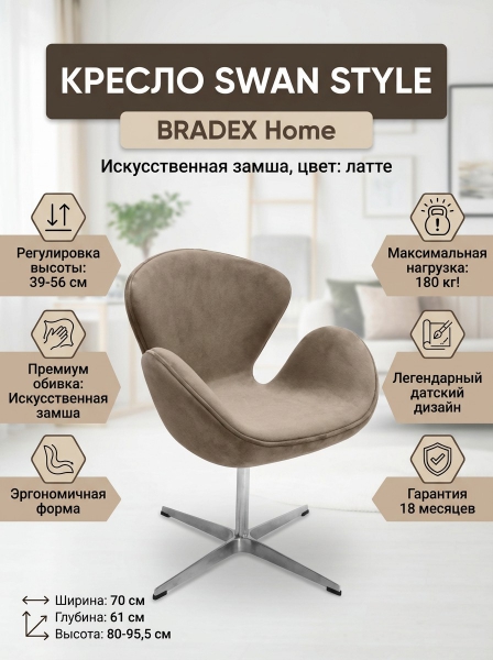 Кресло искусственная замша BRADEX HOME SWAN STYLE CHAIR - БрендСтрана бренда: Россия Премиальность бренда:Кресло искусственная замша BRADEX HOME SWAN STYLE CHAIR - Характеристики