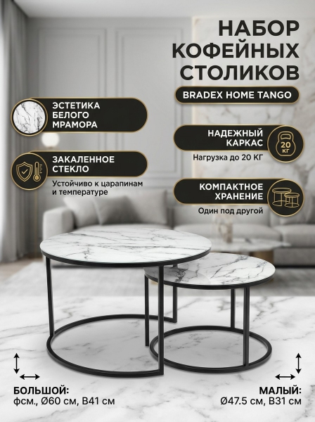 Набор кофейных столиков Bradex Home Tango белый мрамор - БрендСтрана бренда: Россия Премиальность бренда:Набор кофейных столиков Bradex Home Tango белый мрамор - Характеристики