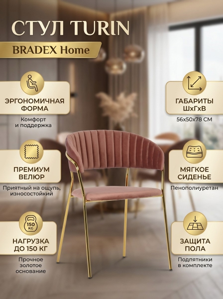 Стул для дома и офиса Bradex Home Turin с золотыми ножками - БрендСтрана бренда: Россия Премиальность бренда:Стул для дома и офиса Bradex Home Turin с золотыми ножками - Характеристики