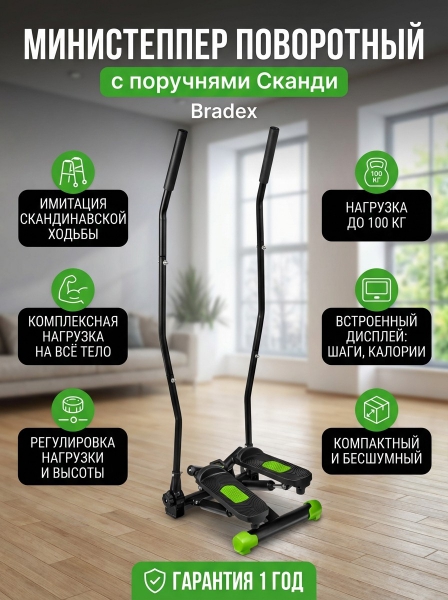 Министеппер поворотный с поручнями Bradex Сканди - Обзор ТОП-10 лучших степперов 2025 🏆: Обзор и рейтинг