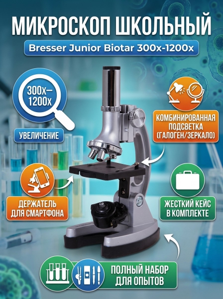 Микроскоп школьный Bresser Junior Biotar 300x-1200x в кейсе - ДоставкаДоставка по Санкт-Петербургу: 795 ₽, 2-3 дня Доставка по России: стоимость уточняйте у оператора. Микроскоп школьный Bresser Junior Biotar 300x-1200x в кейсе - Отзывы0.0
