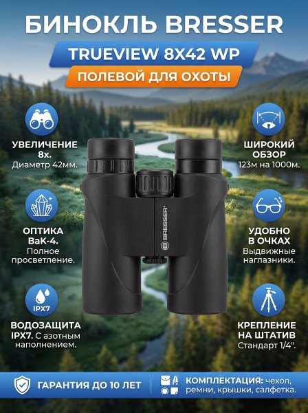 Бинокль водозащищенный Bresser TrueView 8x42 WP - ДоставкаДоставка по Санкт-Петербургу: бесплатно, 2-3 дня Доставка по России: стоимость уточняйте у оператора. Бинокль водозащищенный Bresser TrueView 8x42 WP - Отзывы0.0