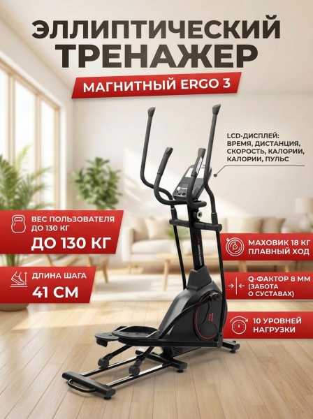 Эллиптический тренажер CardioPower Ergo 3 - ОписаниеСомневаетесь? - Посмотрите рейтинг ТОП-10 по категории «Домашние эллиптические тренажеры»Эллиптический тренажер Ergo 3 - это отличный способ улучшить свою физическую форму и общее состояние здоровья. Регулярные тренировки на нем способствуют укреплению сердечно-сосудистой системы, повышению выносливости и сжиганию калорий. Эргономичный дизайн обеспечивает комфорт во время занятий, снижая нагрузку на суставы. Благодаря плавному ходу и различным уровням сопротивления, вы сможете подобрать оптимальную интенсивность тренировки. Достижение желаемых результатов станет более приятным и эффективным с использованием эллиптического тренажера.