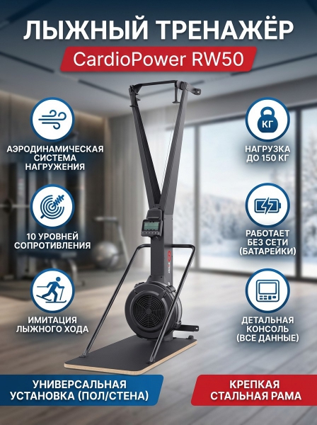 Лыжный тренажёр Cardiopower RW50 - ДоставкаДоставка по Санкт-Петербургу: бесплатно, 2-3 дня Доставка по России: стоимость уточняйте у оператора. Лыжный тренажёр Cardiopower RW50 - Отзывы0.0