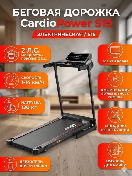 Беговая дорожка CardioPower S15 - ОписаниеСомневаетесь? - Посмотрите рейтинг ТОП-10 по категории «Домашние беговые дорожки»Беговая дорожка CardioPower S15.