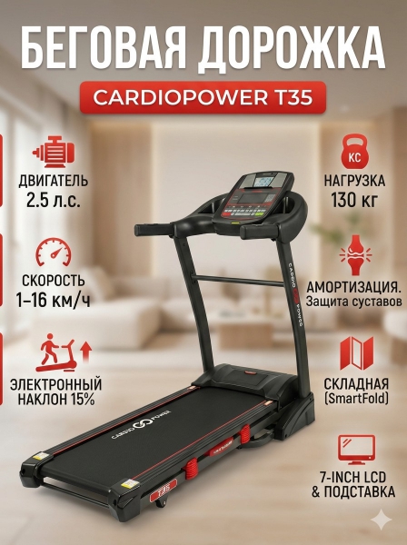 Домашняя беговая дорожка CardioPower T35 - ДоставкаДоставка по Санкт-Петербургу: бесплатно, 2-3 дня Доставка по России: стоимость уточняйте у оператора. Домашняя беговая дорожка CardioPower T35 - Отзывы0.0