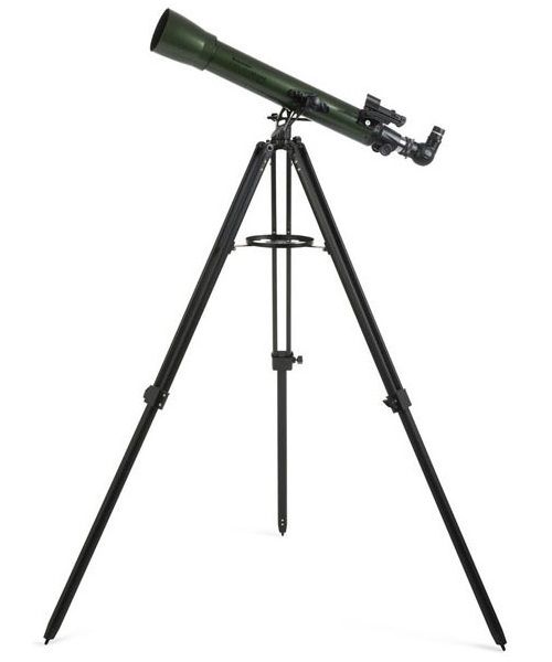 Телескоп на штативе Celestron ExploraScope 70 AZ - ОписаниеТелескоп Celestron ExploraScope 70 AZ – это легкий 70-миллиметровый рефрактор-ахромат для астрономических и наземных наблюдений. Он позволяет исследовать Луну, планеты, а также некоторые наиболее яркие объекты дальнего космоса. Наземные наблюдения возможны благодаря оборачивающей призме 90° (в комплекте), которая делает изображение прямым (без нее телескоп переворачивает картинку). Телескоп Celestron ExploraScope 70 AZ – это прекрасный вариант для начинающих любителей астрономии.