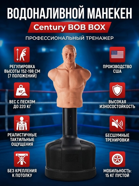 Водоналивной манекен для бокса Century BOB BOX - ДоставкаДоставка по Санкт-Петербургу: бесплатно, 2-3 дня Доставка по России: стоимость уточняйте у оператора. Водоналивной манекен для бокса Century BOB BOX - Отзывы4.7