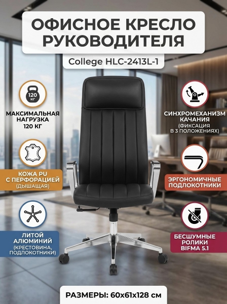 Кроме того, кресло College HLC-2413L-1 обладает прекрасными представительскими характеристиками, в самом выгодном свете представляя своего хозяина, даже когда он отсутствует на месте.