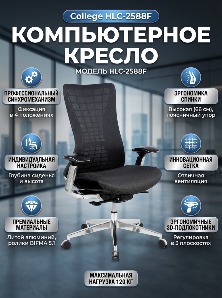 Компьютерное кресло College HLC-2588F - БрендСтрана бренда: Россия Премиальность бренда:Посмотреть все ортопедические кресла для персонала College (21) Компьютерное кресло College HLC-2588F - Характеристики